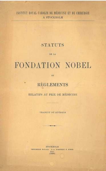 Statuts de la fondation Nobel et règlements relatifs au prix de médecine