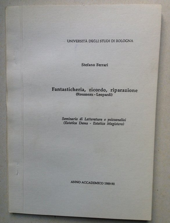 Stefano Ferrari Fantasticheria Ricordo Riparazione Rousseau Leopardi Seminario