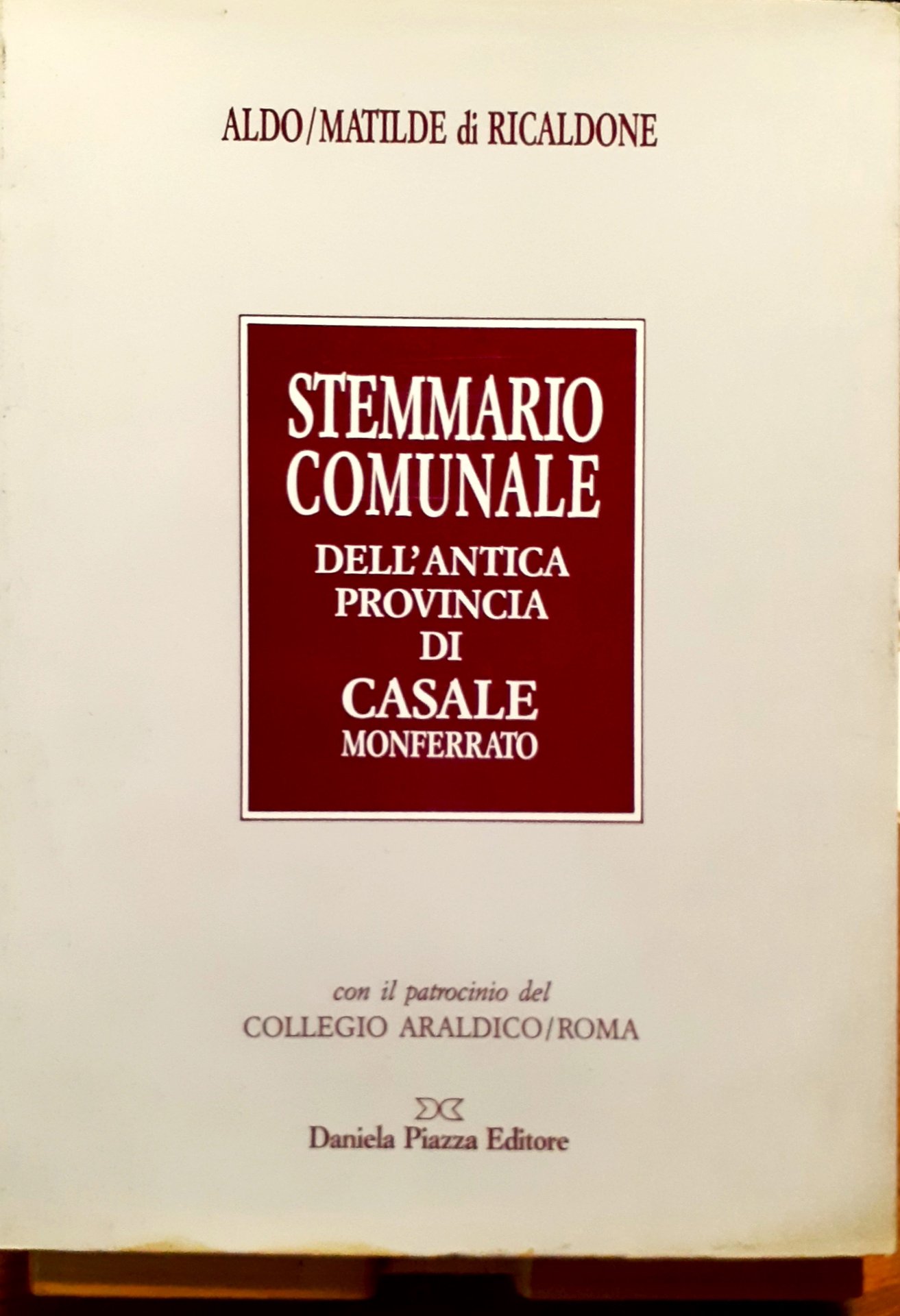 I ed.. Con il patrocinio del Collegio Araldico-Roma. Presentazione del Marchese Prof. Aldo Pezzana Capranica del Grillo - Presidente di Sezione del Consiglio di Stato, Docente di diritto romano. IV/ (2)+174/ brossura/ sovraccoperta patinata con grafica in grigio/b/bordeaux. Illustrazioni in nero f.t. (stemmi) di Matilde di Ricaldone. Progetto grafico: Emilio Isca per Visual. Stato buono-ottimo. Indice: biografie autori - Opere principali dello stesso autore (Storia generale subalpina - Storia militare - Ordini Cavallereschi - Archivistica - Biografie - Genealogie - Araldica - Ampelografia) - Presentazione; Marchese Prof. Aldo Pezzana Capranica del Grillo (Presidente di Sezione ddel Consiglio di Stato-Docente di Diritto Romano) - Introduzione - Stemmario comunale dell'antica Provincia di Casale Monferrato (Alfiano Natta-AL - Altavilla Monferrato-AL - Balzola-AL - Borgo San Martino-AL - Bozzole-AL - Calliano-AT - Camagna-AL - Camino-AL - Casale Monferrato-AL - Casorzo-AT - Castagnole Monferrato (già di Casale)-AT - Castelletto Merli-AL - Castelletto Monferrato-AL - Castellamonte-AL - Cereseto Monferrato-AL - Cerrina-AL - Colcavagno-AT - Coniolo-AL - Conzano-AL - Corteranzo-AL - Cuccaro Monferrato-AL - Cunico-AT - Frassinello Monferrato-AL - Frassineto Po-AL - Fubine-AL - Gabiano-AL - Giarole-AL - Grana-AT - Grazzano Badoglio-AT - Lu-AL - Mirabello Monferrato-AL - Mombello Monferrato-AL - Moncalvo-AT - Moncestino-AL - Montalero-AL - Montemagno-AT - Montiglio-AT - Morano Po-AL - Murisengo-AL - Occimiano-AL - Odalengo Grande-AL - Odalengo Piccolo-AL - Olivola-AL - Ottiglio-AL - Ozzano Monferrato-AL - Penango-AT - Pomaro Monferrato-AL - Pontestura-AL - Ponzano Monferrato-AL - Rinco-AT - Rosignano Monferrato-AL - Salabue-AL - Sala Monferrato-AL - San Giorgio Monferrato-AL - San Salvatore Monferrato-AL - Scandeluzza-AT - Serralunga di Crea-AL - Solonghello-AL - Terruggia-AL - Ticineto-AL - Tonco-AT - Treville-AL - Trino-VC - Valmacca-AL - Varengo-AL - Viarigi-AT - Vignale Monferrato-AL - Villa Deati-AL - Villa Miroglio-AL - Villanova Monferrato-AL.