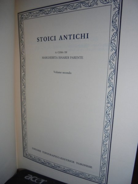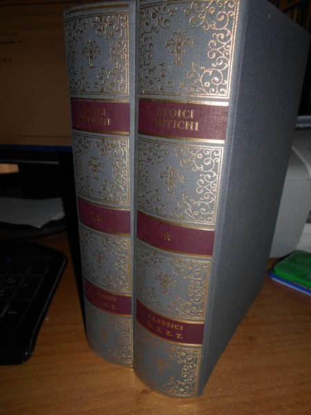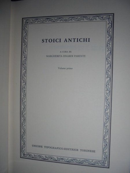 A cura di Margherita Isnardi Parente. Torino, U.T.E.T., 1989. STOICI ANTICHI. 2 volumi in-8°, tela edit. con titoli e fregi in oro al dorso. Per complessive 1308, (2) pp. con 8 tavole fuori testo. Esemplare in stato di nuovo. Neg. scat. UTET. parav. Spese di spedizione euro 8