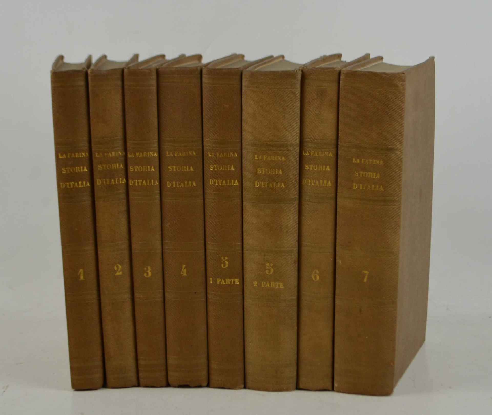 Dieci parti legate in sette volumi di cm. 21,5, pp. 4000 ca, complessive. Con una bella carta geografica a colori e più volte ripiegata raffigurante la Lombardia nel 776. Solida legatura del tempo in piena percallina zigrinata verde con titoli in oro ai dorsi. Esemplare genuino e marginoso, in ottimo stato di conservazione.