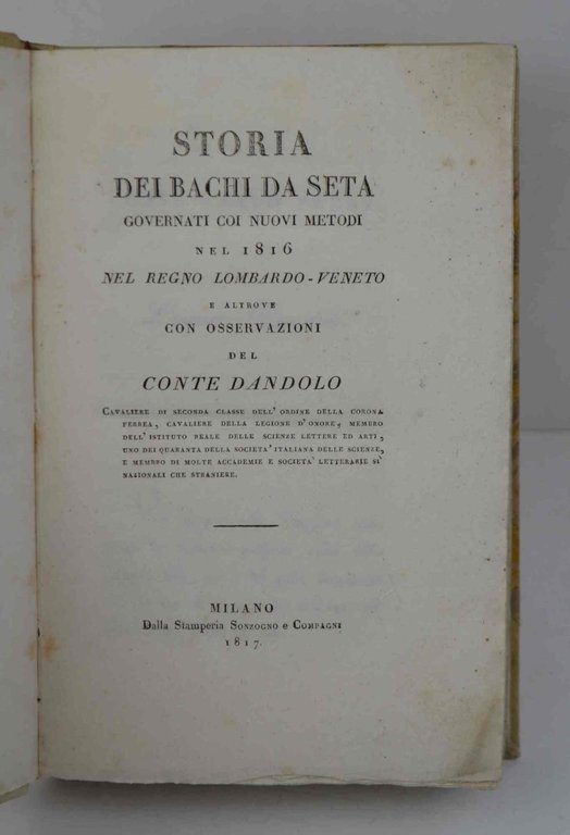 Storia dei bachi da seta governati coi nuovi metodi nel 1816 nel Regno Lombardo-Veneto e altrove con osservazioni del Conte Dandolo.