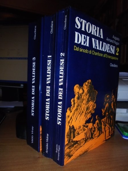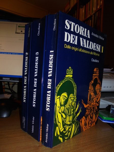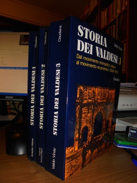 Amedeo, Molnar. Augusto, Armand Hugon. Valdo, Vinay. Torino, Claudiana, 1974 - 1980. Storia dei Valdesi. Volumi 1-2-3. Dalle origini all' adesione alla Riforma. Dal sinodo di Chanforan all' Emancipazione. Dal movimento evangelico italiano al movimento ecumenico (1848-1978). 3 volumi in-8°, cartoncino edit. con risvolti. 370 pp. con 122 illustrazioni in tavole fuori testo e altre nel testo; 327 pp. con 79 illustrazioni in tavole f.t.; 527 pp. con 106 illustrazioni in tavole fuori testo. Il terzo volume è come nuovo. Opera completa ben conservata. Uff. TV. mob. nostro