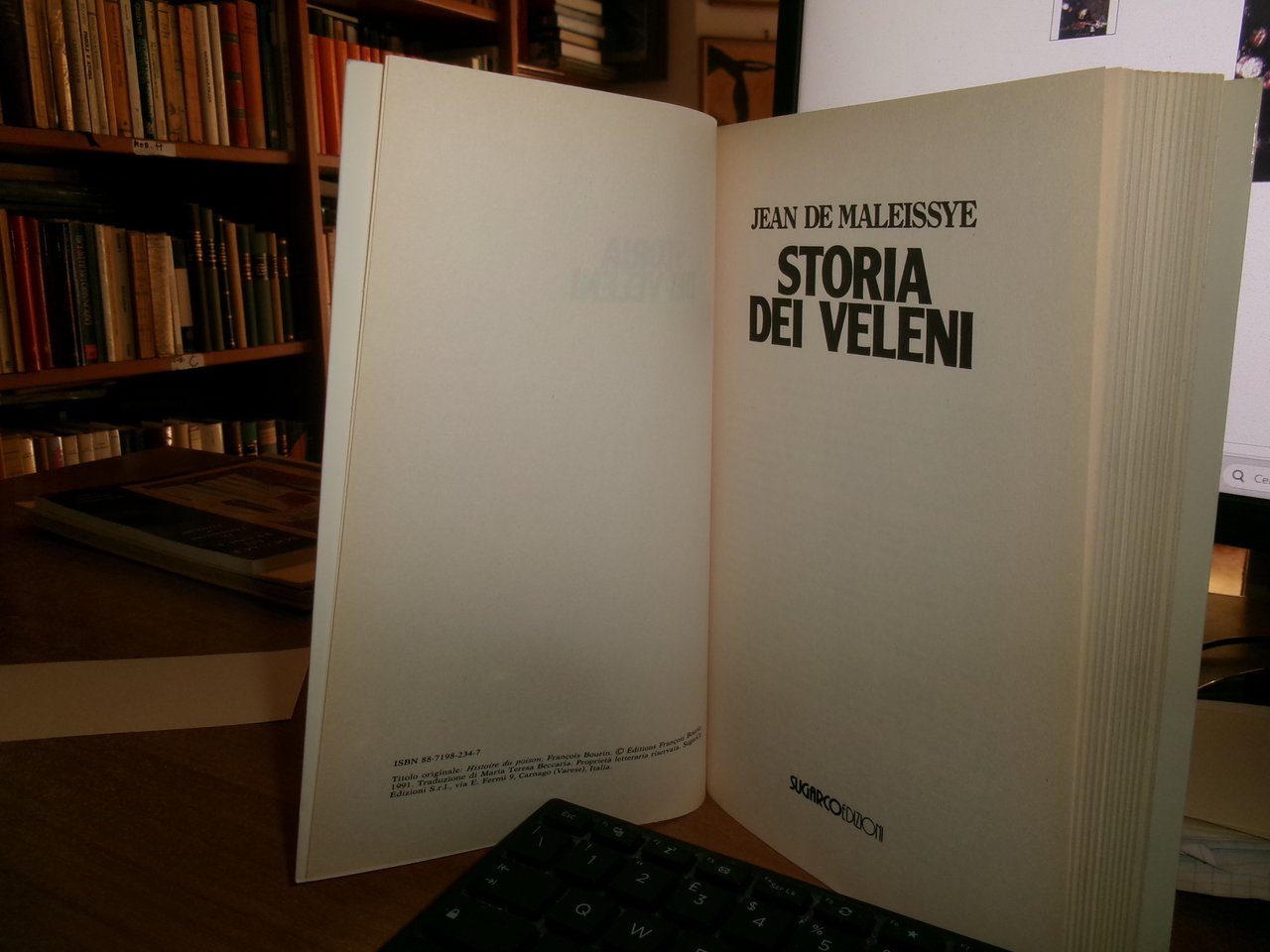 JEAN MALEISSYE. (Varese), Sugarco Edizioni, 1991. Storia dei veleni da Socrate ai nostri giorni. In-8°, cart. edit. con risvolti. 359 pp. Come nuovo. Neg. mob. 13