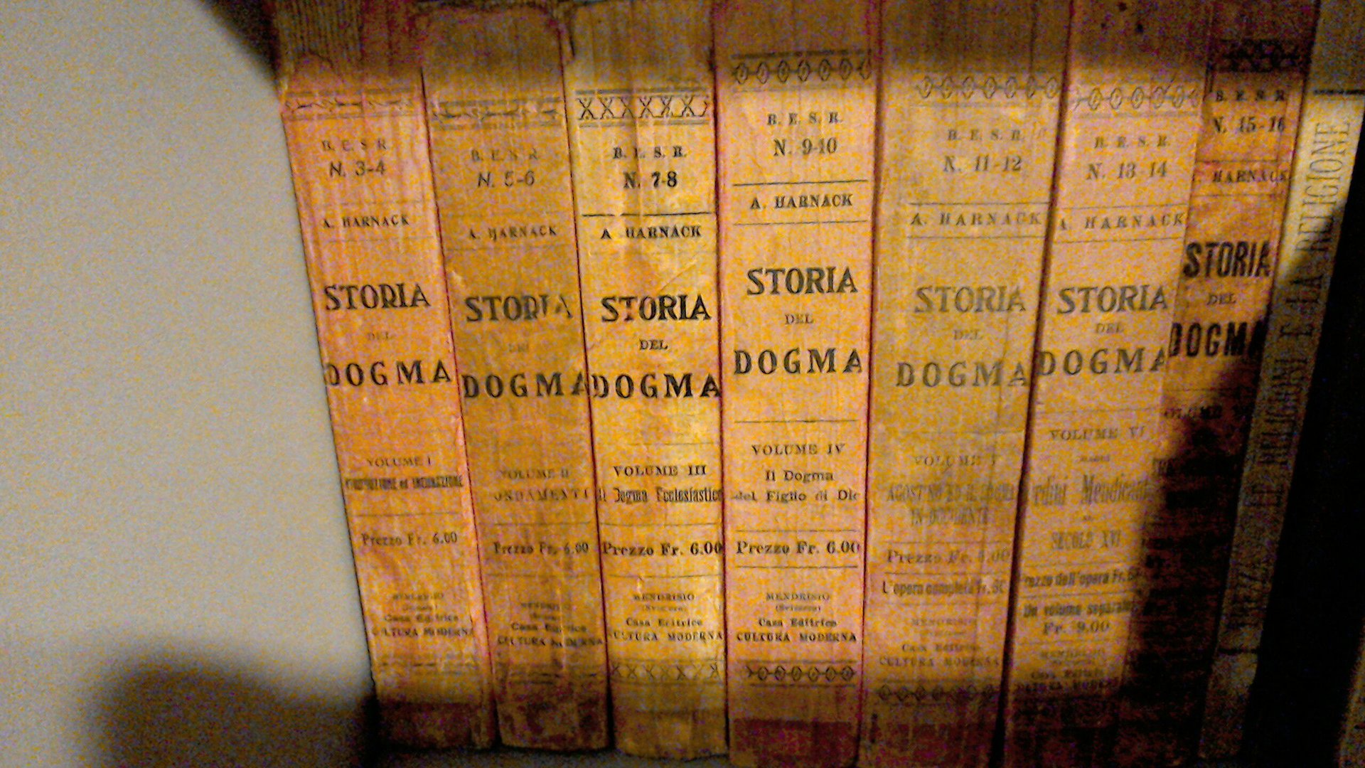 7 volumi dedicati rispettivamente a : Introduzione e incubazione - Fondamenti - Sviluppo del dogma ecclesiastico - Il dogma del Figlio di Dio - Agostino e il dogma in occidente - Degli ordini mendicanti del secolo XVI - Le tre correnti moderne