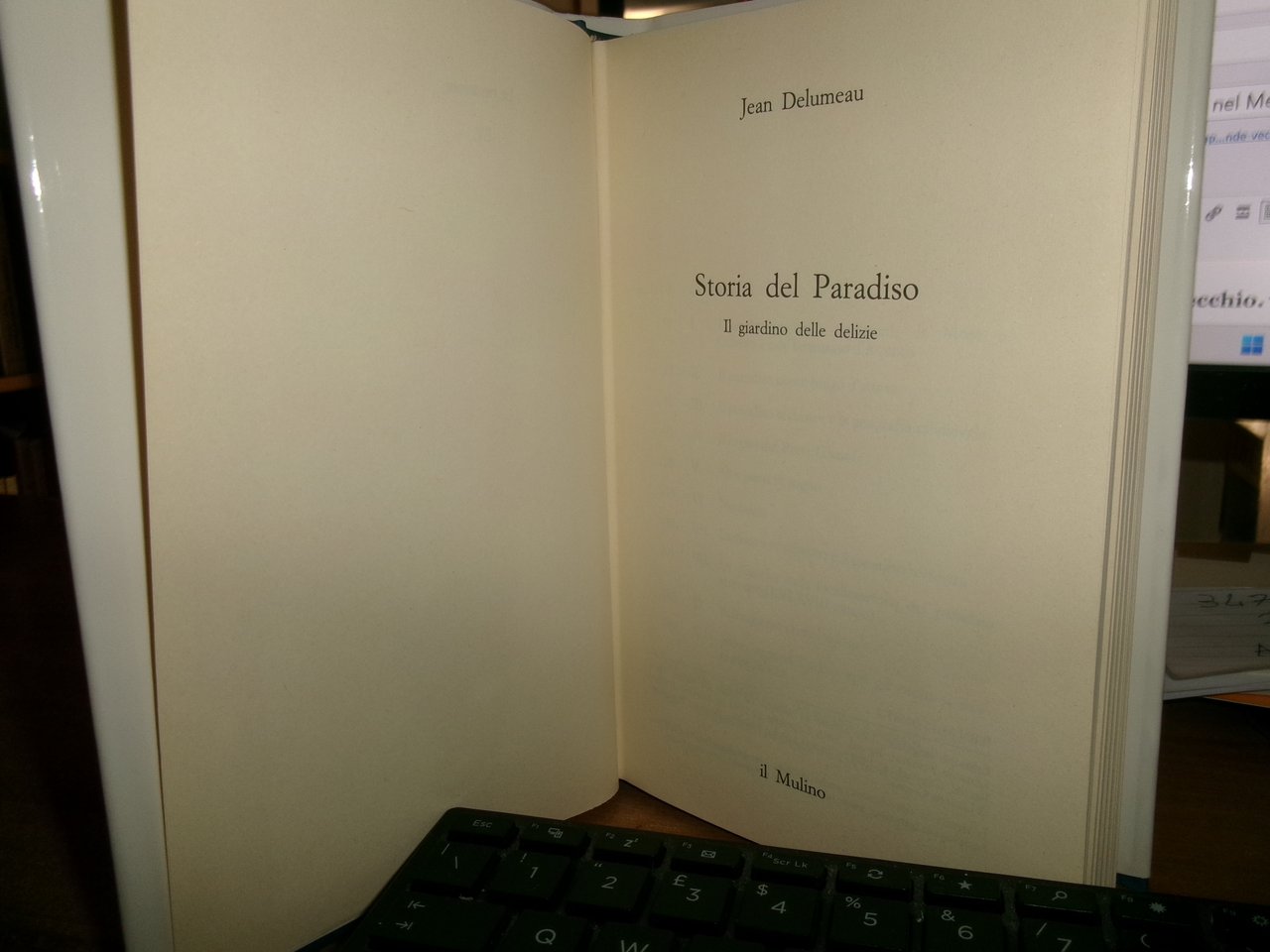 JEAN DELUMEAU. Bologna, Il Mulino, 1994. Storia del Paradiso. Il giardino delle delizie. In-8° piccolo, tela edit. con titolo al dorso, sovracopertina ill. a col. 322, (3) pp. con alcune illustrazioni in bianco e nero n.t. e tavole a colori f.t. Come nuovo. Neg. mob. bianco nuovo comput.
