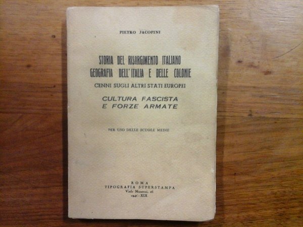Storia del Risorgimento italiano. Geografia dell'Italia e delle colonie. Cenni sugli altri stati europei. Cultura fascista e forze armate per uso delle scuole medie