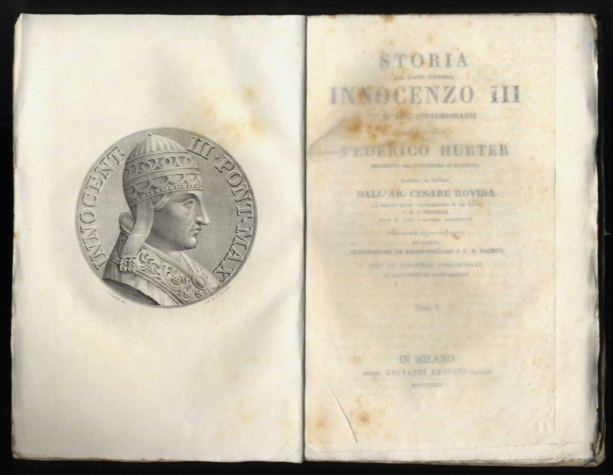 Storia del sommo Pontefice Innocenzo III. e de' suoi contemporanei [.] tradotta in italiano dall. Ab. Cesare Rovida [.]. Tomo I [- Tomo III].