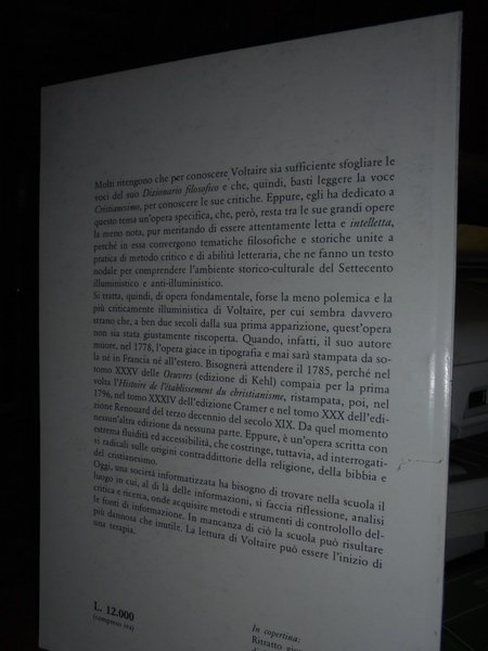 VOLTAIRE. Foggia, Bastogi, 1987. Storia dell' affermazione del Cristianesimo. In-8° piccolo, cart. edit. 124 pp. Come nuovo. Neg. esot. mob. 30