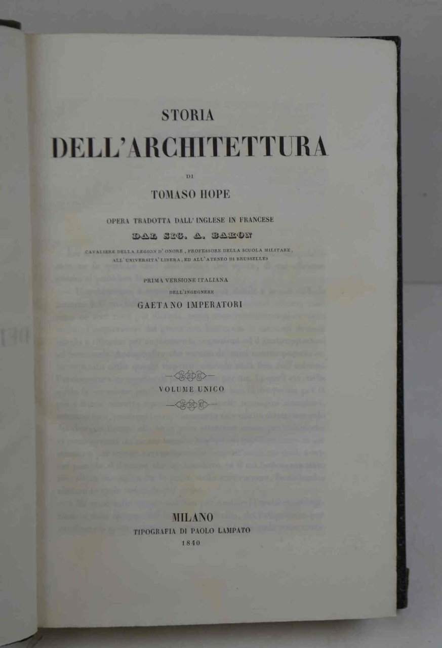 Storia dell'architettura... prima versione italiana dell'ingegnere Gaetano Imperatori.
