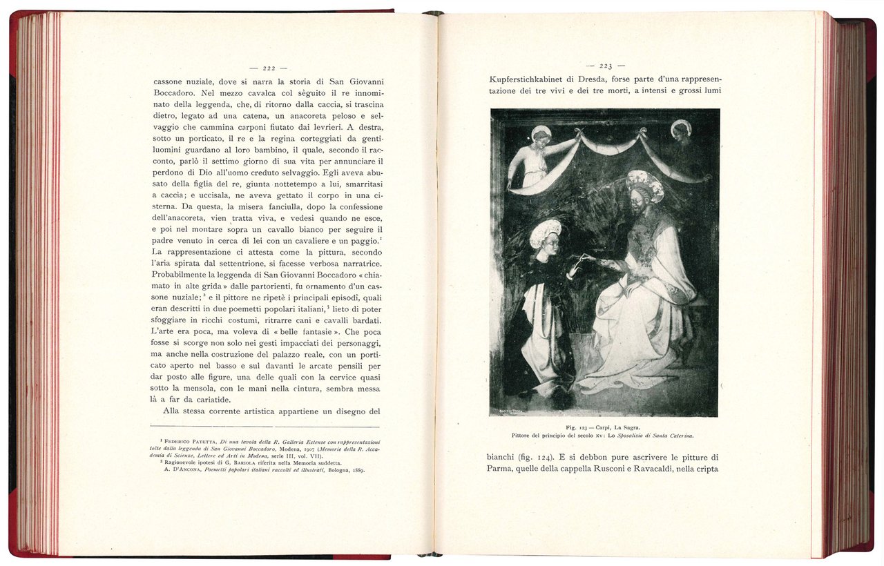 Quattro volumi di mm. 234x162. Pp. LI, [5], 832; XXIX, [5], 858, [2]; XLII, [2], 1175, [1]; XLV, [3], 1153, [3]. Con 496 incisioni in bianco e nero in fototipografia al primo volume, 656 al secondo, 892 al terzo, 817 al quarto. Mezza tela con punte, titolo in oro al dorso e brossure editoriali originali applicate al piatto anteriore dei volumi. Tagli rossi. Lievi abrasioni e minime mancanze marginali ai piatti, piccole mancanze lungo le cerniere, piccola mancanza al piatto posteriore del quarto volume. Ex-libris cartaceo applicato al contropiatto anteriore ("Ut palma florebit". Ex-libris Caroli Pilati"), firma di possesso al margine superiore della prima carta.