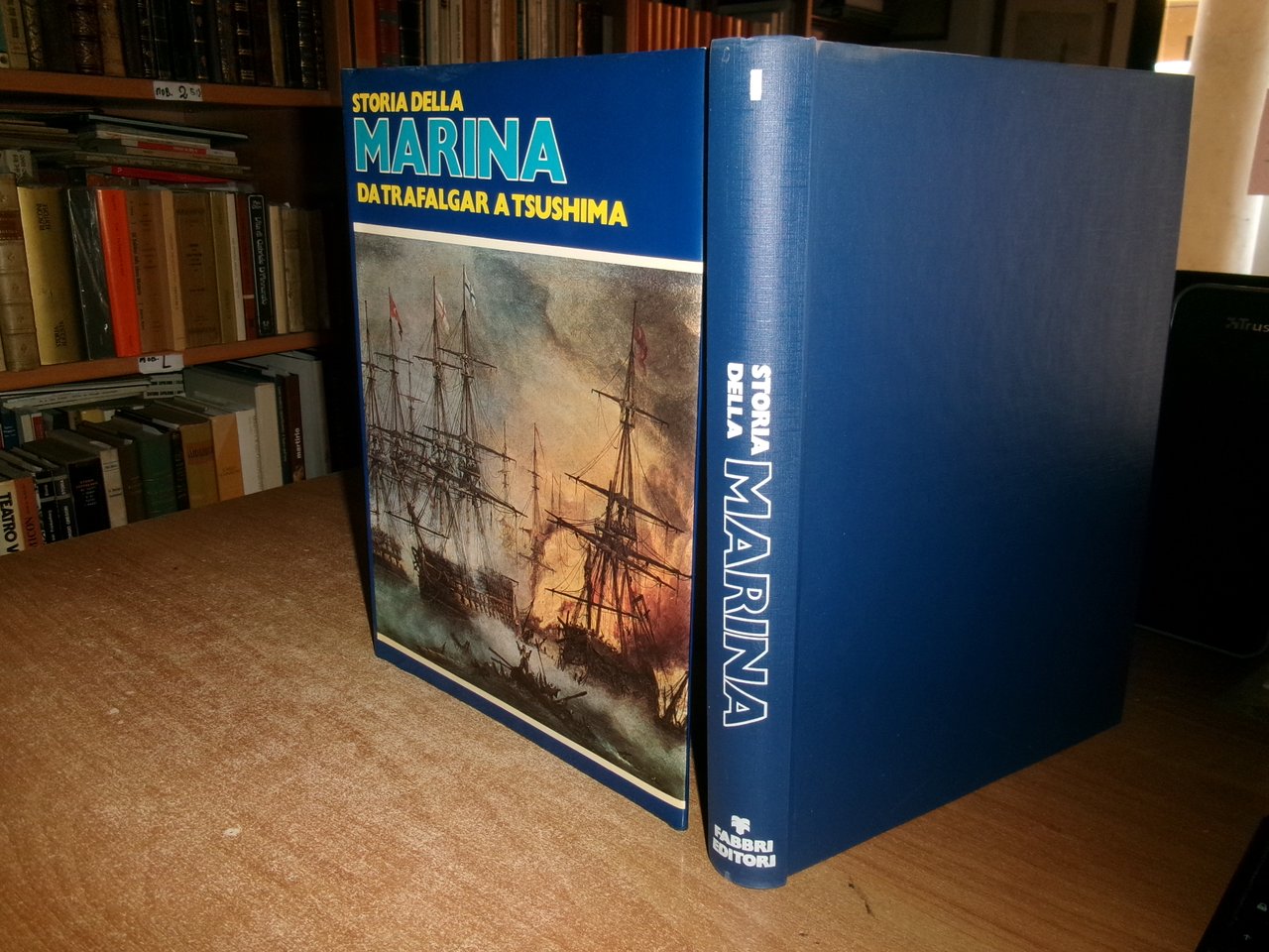 Storia della marina vol. 1. Da Trafalgar a Tsushima: 1805-1905. Milano, Fabbri Editore, 1978. In-4°, tela edit. bleu con sovracopertina ill. a col. 336 pp. con numerose illustrazioni la maggior parte a colori n.t. Ottimo stato. Uff. C - IV - 5 - 2