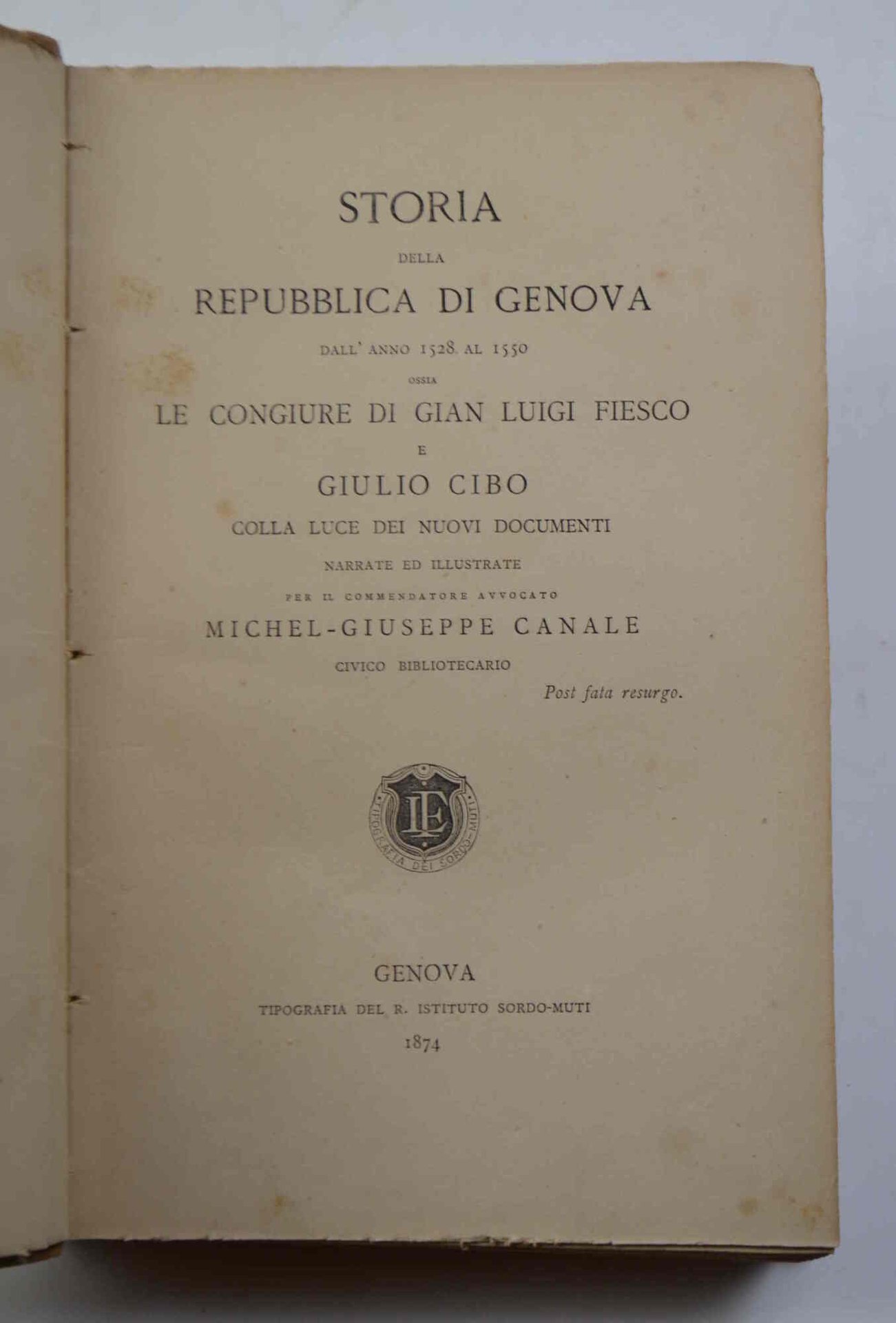 Storia della Repubblica di Genova dall'anno 1528 al 1550 ossia le congiure di Gian Luigi Fiesco e Giulio Cibo colla luce dei nuovi documenti...