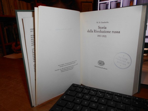 W. H. CHAMBERLIN. Torino, Giulio Einaudi, 1966. Storia della Rivoluzione russa 1917-1921. In-8°, tela edit. verde con titolo al dorso. xx, 909 pp. con alcune illustrazioni in tavole fuori testo e ritagli sfusi inseriti nel libro. Ottimo stato ma senza sovracopertina. Stanzetta mob. sinistra 2 - 3 carc.