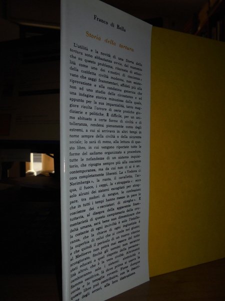 Franco Di Bella. Milano, Sugar Editore, 1963. Storia della Tortura. In-8° piccolo, tela edit. con sovracopertina. 351 pp. con alcune tavole fuori testo. In ottimo stato di conservazione. Neg. mob. nero sopra 10