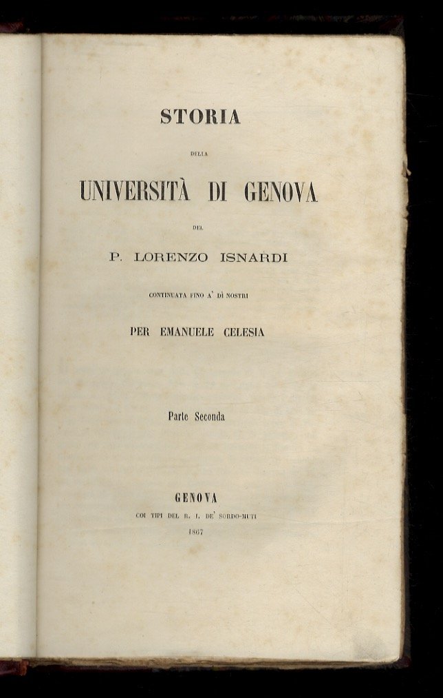 Storia della Università di Genova del p. Lorenzo Isnardi, continuata fino a' dì nostri per Emanuele Celesia. Parte seconda.