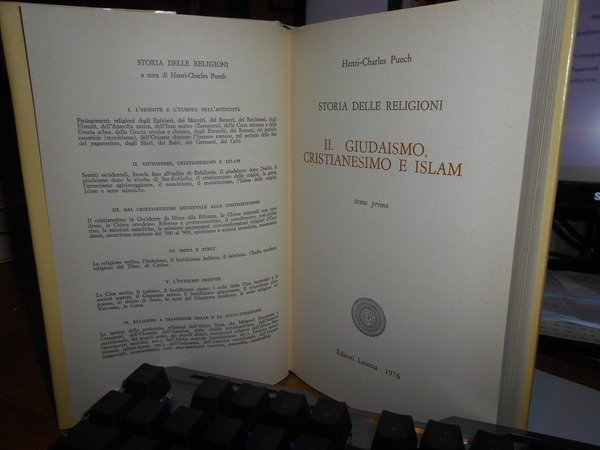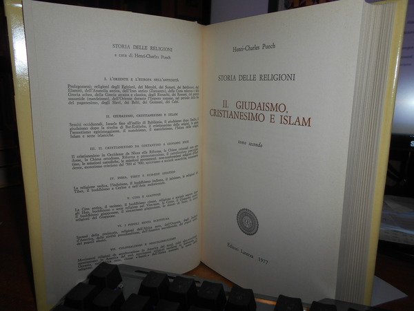 HENRI-CHARLES PUECH. Bari, Gius. Laterza & Figli, 1976. Storia delle Religioni. GIUDAISMO CRISTIANESIMO E ISLAM. 2 volumi in-8° piccolo, cartonato edit. con titolo a i dorsi e sovracopertine. Complessive 1083, (2) pp. a numerazione pagine continua. In ottimo stato di conservazione o come nuovi. Uff. stanzetta