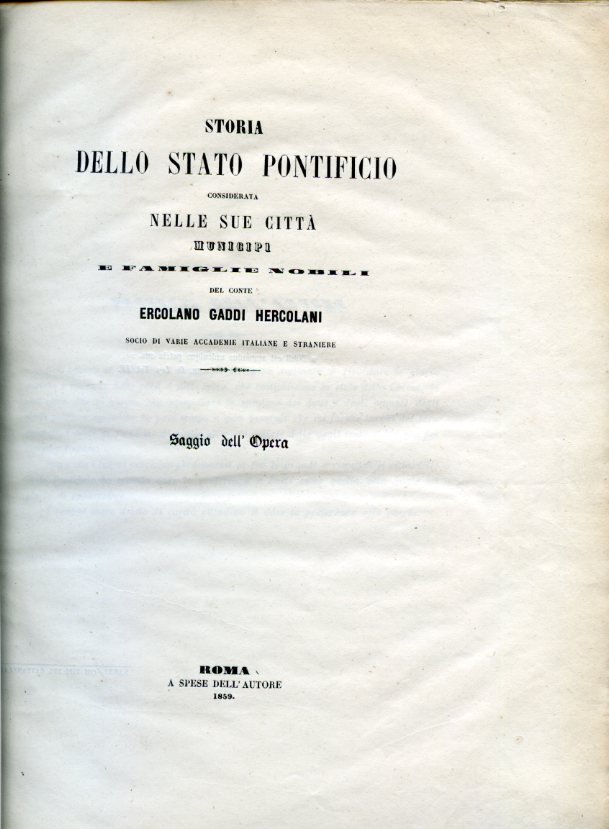 Storia dello Stato Pontificio considerata nelle sue città, municipi e famiglie nobili. Saggio dell'opera | Libri antichi e moderni | Gaddi Hercolani Ercolano