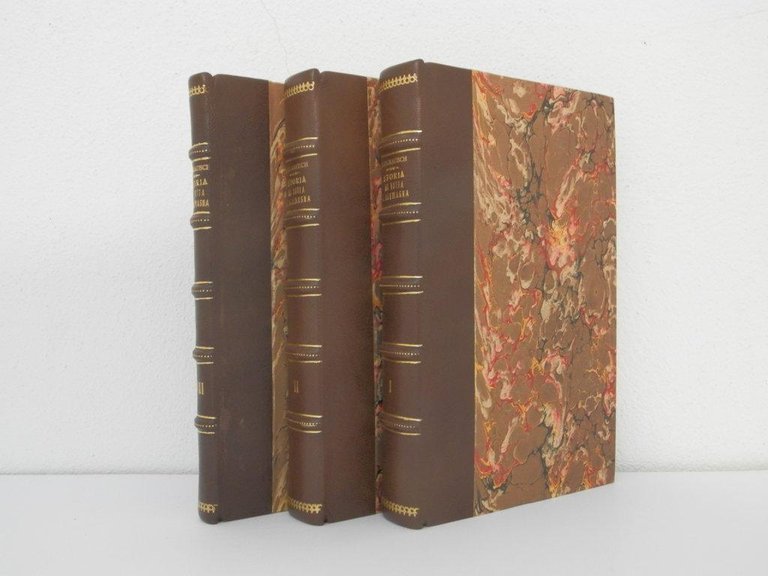 3 volumi, pp. 423; 432; 256; rilegatura recente in mezza pelle, titolo in oro al dorso che è diviso da 5 nervi, piatti marmorizzati. Esemplare fresco e molto buono. *** TUTTI I NOSTRI LIBRI SONO VISIBILI PREVIO CONTATTO MAIL O TELEFONO NELLA NUOVA SEDE DI MILANO: LIBRERIA COSMOPOLIS, VIA JOMMELLI, 22. ***