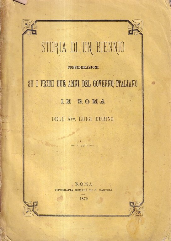 Storia di un Biennio. Considerzioni su i Primi due Anni del Governo Italiano in Roma