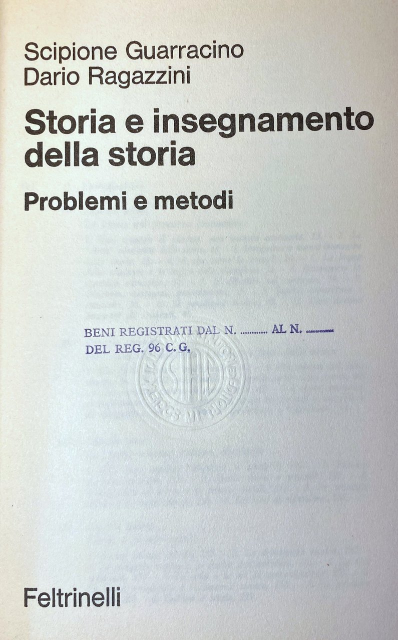 Titolo: Storia e insegnamento della storia. Problemi e metodi