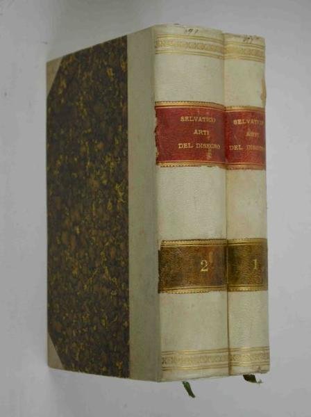 Due volumi di cm. 21, pp. 631 (1) xiv (4); (4) 919 (1) xxix + 123 (1) d'appendici. Solida legatura del tempo in mezza pergamena con punte, dorsi lisci con fregi e titoli su doppi tasselli bicolore. Ottimo stato di conservazione. Iccu segnala la presenza di un ritratto al primo volume che il nostro esemplare non contiene. Edizione originale di quest'opera che raccoglie le lezioni tenute dall'architetto e storico dell'arte Pietro Selvatico (Padova 1803-80) nell'accademia di Belle Arti di Venezia. Si segnala la corposa appendice titolata: Considerazioni sulle pratiche del disegnare e del dipingere in fresco ed in olio de' pittori dei secoli XV e XVI, poste a raffronto con quelle usate dai moderni. Non comune.