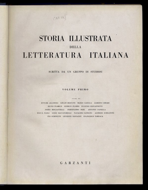 STORIA Illustrata della letteratura italiana scritta da un gruppo di studiosi. Volume Primo. [Le Origini - Il Dugento - Il Trecento - Il Quattrocento].