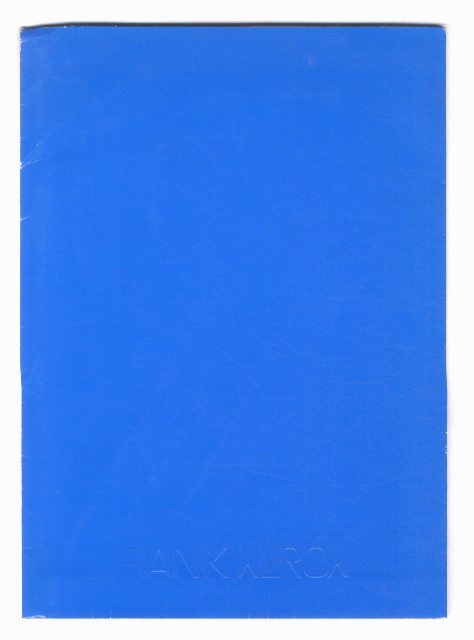 (Firenze), (Rank Xerox Italia), (1988), cartella in cartoncino blu con logo "Rank Xerox" impresso a secco all'anteriore, in-4. Contenente 29 fogli sciolti con presentazione e 26 schede con testi di Marco Fittà e Dante Padoan e illustrazioni in b.n. nel testo (generate con Sistema di Editoria Personale Xerox Documenter).