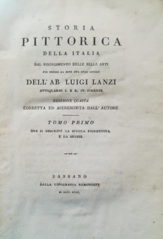 STORIA PITTORICA DELLA ITALIA DEL RISORGIMENTO DELLE BELLE ARTI FIN PRESSO AL FINE DEL XVIII SECOLO DELL'AB. LUIGI LANZI...