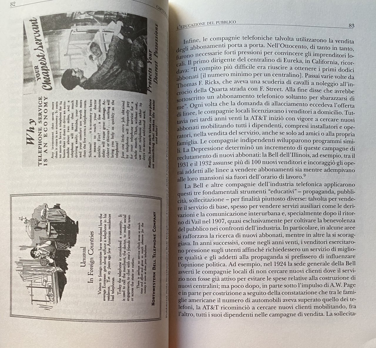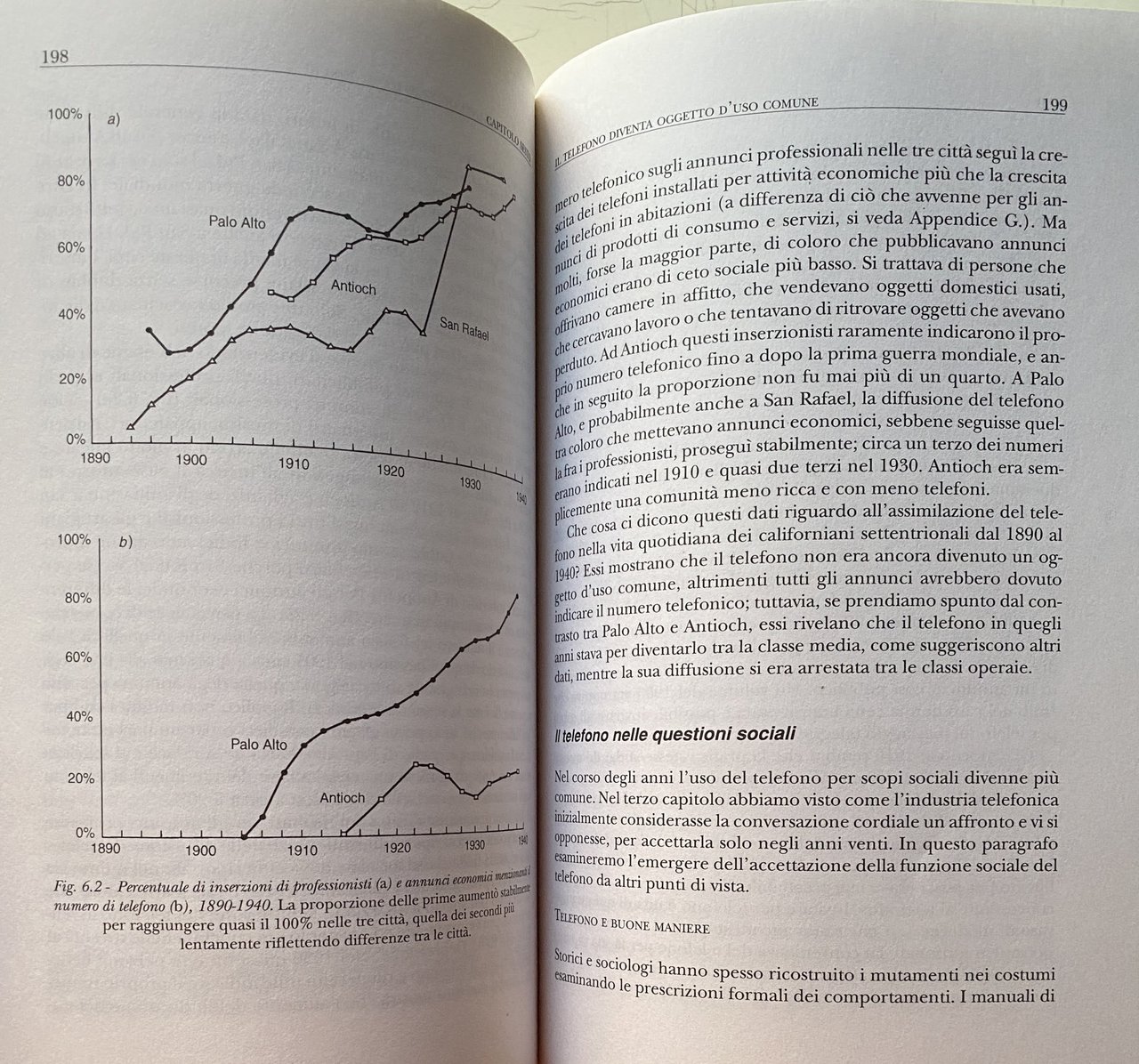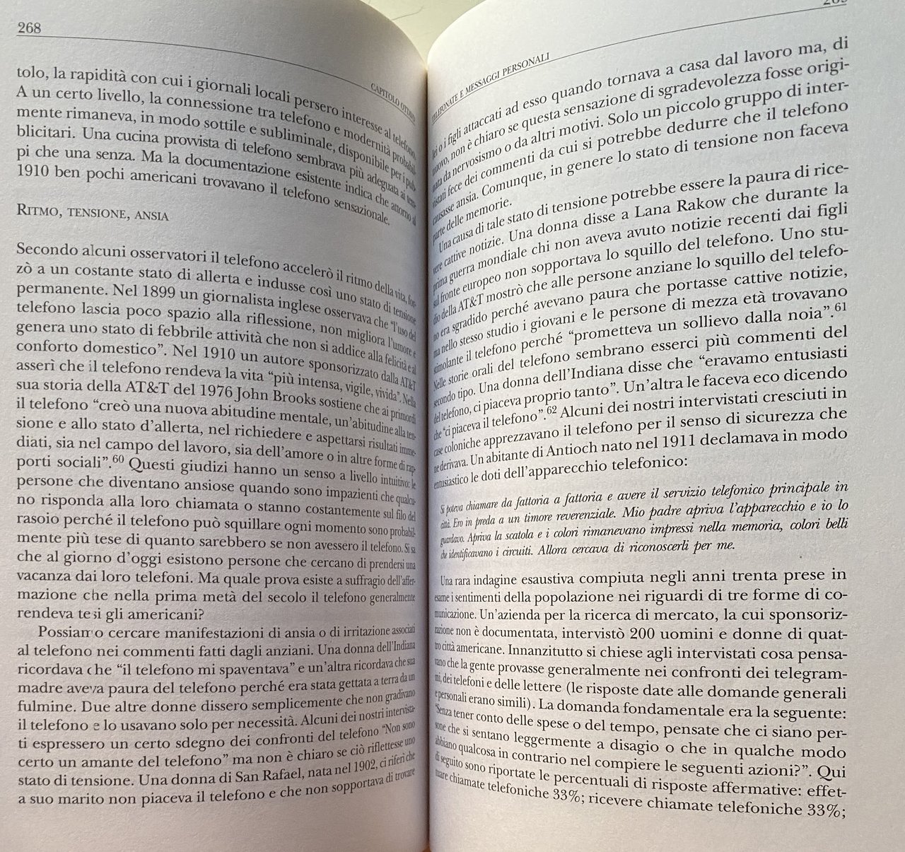 Soggetti: Sociologia delle comunicazioni Comunicazione Storia sociale del telefono Telefoni Apparecchi telefonici Americani Attività Pubblicità per adulti Alexander Graham Bell Antioch Ledger Appendice AT&T Automobile Bell Canada System Colletti blu Operai Censimento Concorrenza Consumatori Conversazioni Costi Cultura Clienti Elettricità Galateo Scambio Famiglie Agricoltori Field Research Corporation Amici storici Città Reddito Intervistati Logit Interurbana Chiamate Parlare Filo Innovazioni tecnologiche moderne Lynd Marin County Middletown Minitel Giornali moderni Palo Alto Linee telefoniche Percentuale Tariffe Abbonamenti Elenchi telefonici PT&T Residenziali Residenti Ruolo Rurale Telefonia Campione San Francisco San Rafael Statistiche Abbonati Centralino Telegrafo Compagnie telefoniche Diffusione Industria Numeri di telefono Servizio telefonico Theodore Vail TPCM U.S. Bureau Utenti Urbani Theodore Vail Colletti bianchi Donne lavoratrici Borghesia Classe media Collezionismo Studi culturali Saggistica Libri rari fuori catalogo Bibliografia Riferimento Segreteria Messaggi Relazioni sociali Vita Comunità Bambini Chiesa Solitudine Noia Vita rurale Voices Revived Mass Media Informazione Pacific Classe operaia Grande Depressione Economia Consumismo Beni Monopolio Società Concorrenza Mercato Europa Reddito Bibliografia Riferimento Collezionismo Indagini Inchieste Dossier Robert Merrill William Ogburn Lynd Trevor Pinch Wiebe Bijker SCOT Hughes Ruth Schwartz Cowan Consumo Telegrafo Fili Italia Poste Telecomunicazioni Telecom SIP Guglielmo Marconi Alfredo Baccarini Concessioni Siemens Halske STET Teti Guglielmo Reiss Romoli IRI Patrice-Alexandre Carré P. Young Bottiglieri Parai Telex Chiamate Magnus Volk Marshall McLuhan Telefonisti Operatori Internazionale Arnold Bennett Cabine telefoniche Gettoni Gutta Percha Ufficio postale Claude Chappe Morse Antonio Meucci Servizio Bisogni Desiderio Georg Simmel Günther Anders Ernst Bloch Walter Benjamin Jürgen Habermas Distanza Intercontinentale Novecento Iowa Numero Appartamenti Buone maniere Innovazioni Modernità Lana Racow Notizie Familiari Telefoni pubblici Monete Eureka California Anni Venti Anni Trenta Anni Quaranta Anni Cinquanta Guerra Sidney Aronson Duplex Spesa Emergenza Benestanti Stati Uniti Lusso Sociology of Communications Social History of the Telephone Telephones American Telephones Activities Adult Advertising Appendix Automobile Blue Collar Census Competition Consumers Conversations Costs Culture Customers Electricity Etiquette Exchange Families Farmers Historic Friends Cities Income Interviewees Long Distance Calls Talking Wire Modern Technological Innovations Newspapers Telephone Lines Percentage Rates Subscriptions Directories Residential Residents Role Rural Telephony Sample Statistics Subscribers Switchboard Telegraph Companies Diffusion Industry Numbers Service Users Urban White Collar Workers Women Bourgeoisie Middle Class Collectibles Cultural Studies Non-Fiction Rare Books Out of Print Bibliography Reference Secretariat Messages Social Relations Life Community Children Church Loneliness Boredom Life Information Working Class Great Depression Economy Consumerism Goods Monopoly Society Competition Market Europe Income Bibliography Reference Collecting Surveys Investigations Consumption Telegraph Wires Italy Post Office Telecommunications Concessions Calls Telephone Operators Operators International Telephone Booths Tokens Post Office Service Needs Desire Distance Intercontinental Twentieth Century Apartments Good Manners Innovations Modernity News Family Car Public Telephones Coins Twenties Thirties Forties Fifties War Spending Emergency Wealthy United States Luxury