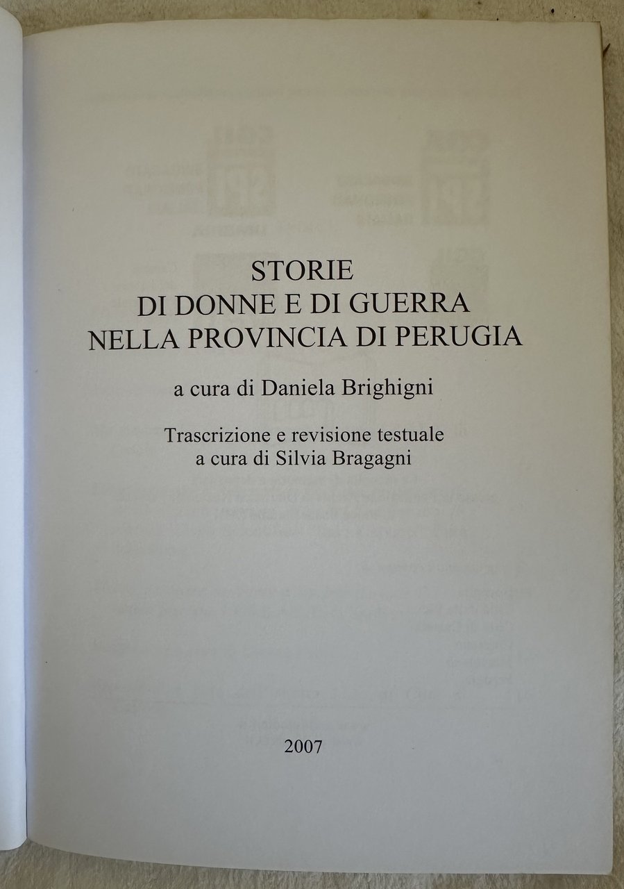 STORIE DI DONNE E DI GUERRA NELLA PROVINCIA DI PERUGIA A CURA DI DANIELA BRIGHIGNI | Libri antichi e moderni | Silvia Bragagni