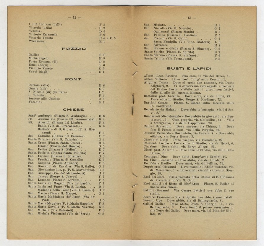 STRADARIO ed altre indicazioni utili della città di Firenze.