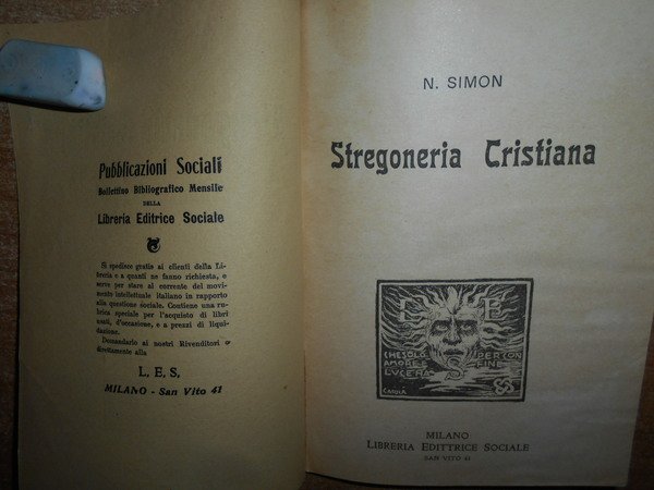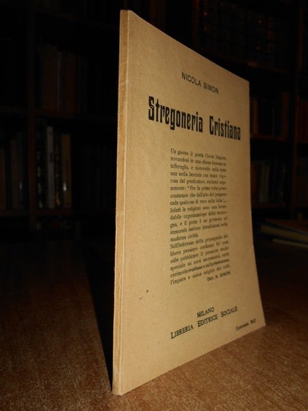 SIMON, Nicola. Milano, Libreria Editrice Sociale, s.d. c. 1910. STREGONERIA CRISTIANA. In-16°, br. orig. 95 pp. Ben conservato. Neg. scat. rossa opuscoli