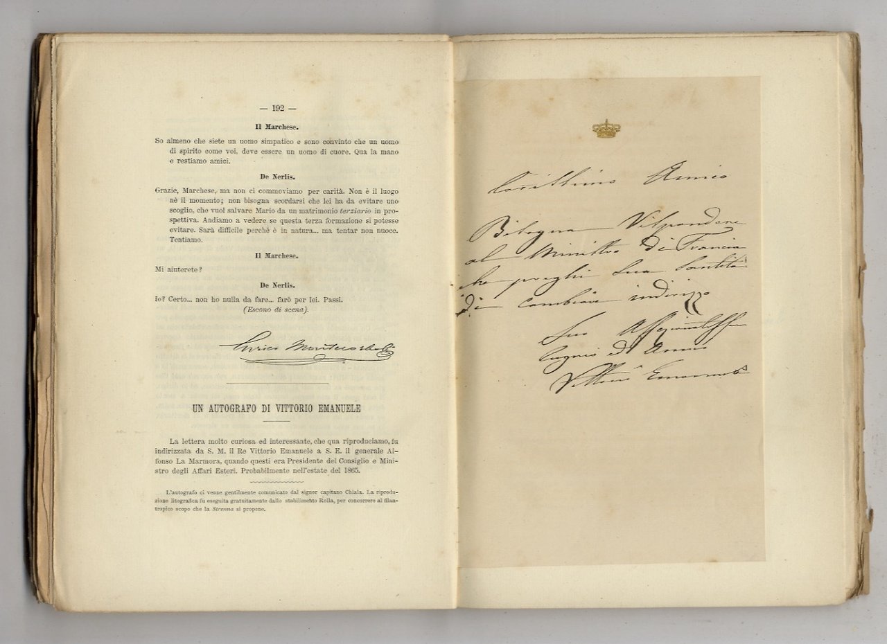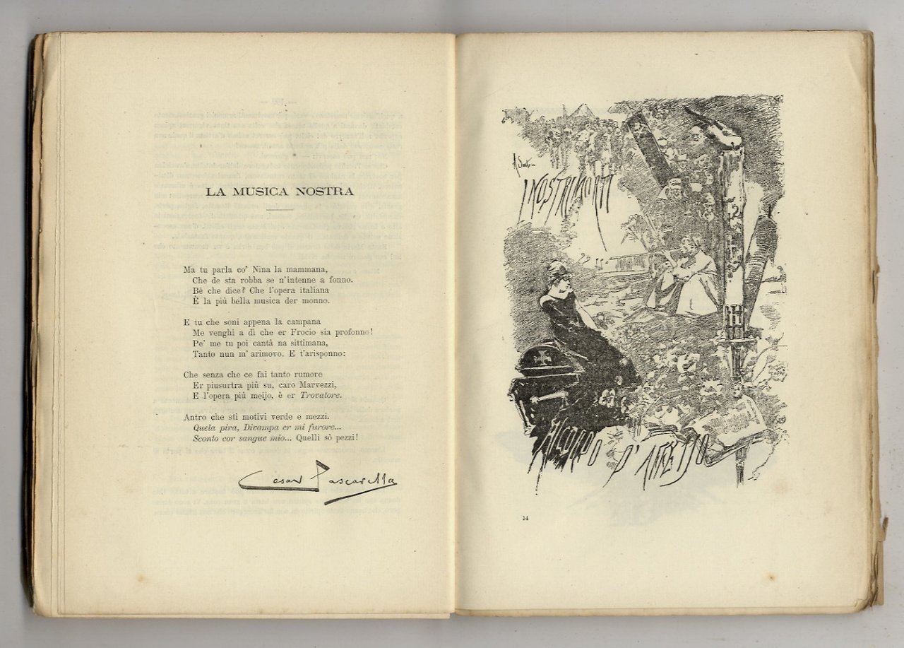 Roma, Forzani e C., 1882, in-8, brossura editoriale con belle copertine editoriali figurate in cromolitografia (anteriore e posteriore), pp. 366. Con un calendario in cromolitografia e decine di tavole in fotolitografia (anche di musica notata su carta rosa, alcune ripiegate, un fac-simile, due in cromolitografia). Con scritti di G. Fortunato, C. Collodi (Poesia e Prosa, bozzetto), S. Di Giacomo, E. Novelli, M. Serao, F. De Sanctis, L. Stecchetti, ecc., ecc. Lievi mancanze al dorso e - marginali alle coperte.