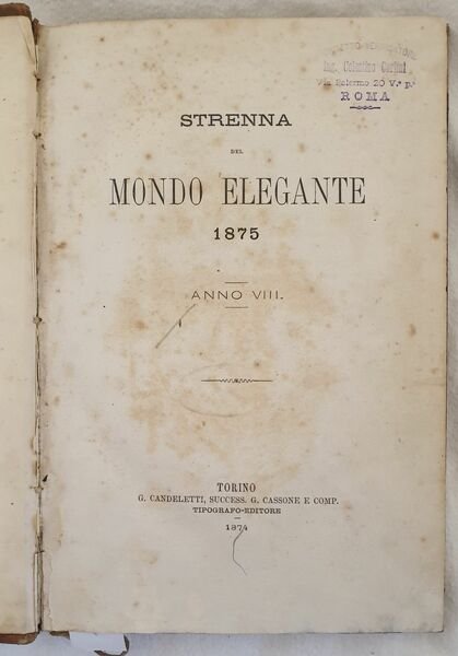 STRENNA DEL MONDO ELEGANTE 1875 ANNO VIII