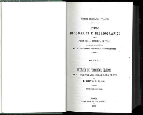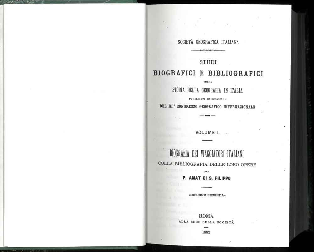 Studi biografici e bibliografici sulla storia della geografia in Italia pubblicati in occasione del III° congresso geografico internazionale. Vol. I: biografia dei viaggiatori italiani colla bibliografia delle loro opere. - Appendice.