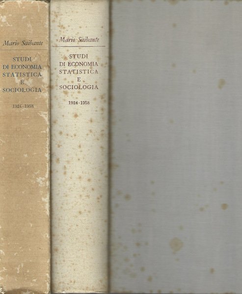 Rilegato in tela bianca con titoli al dorso, segni del tempo, macchie di conservazione ai piatti, fioritura estesa al dorso; legatura salda,macchie al risguardo, pagine integre, leggermente ingiallite ai bordi, perfettamente fruibili. Cofanetto cartonato ingiallito, strappi,abrasioni, parti usurate all'estremità. Presentazione di Corrado Gini. Numero pagine 789.