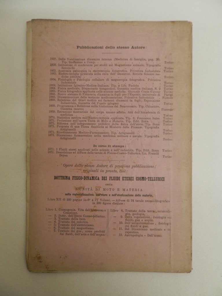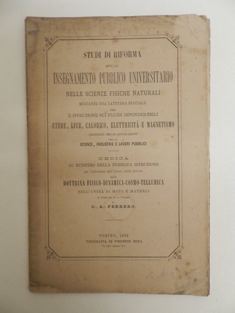 Studi di riforma per lo insegnamento pubblico universitario nelle scienze fisiche naturali mediante una cattedra speciale per l'istruzione sui fluidi imponderabili, etere, luce, calorico, elettricità e magnetismo, destinati nelle applicazioni per le scienze, industrie e lavori pubblici