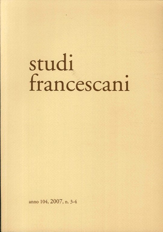Firenze, 2007; br., pp. 410. (Studi Francescani. 3-4. 2007).