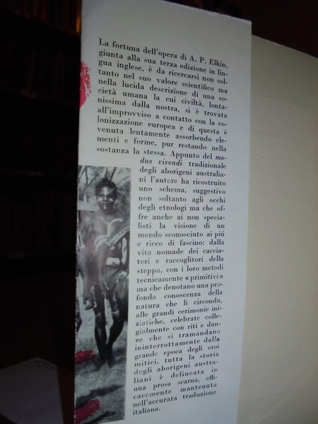 (Studi religiosi) ELKIN, A.P. Torino, Einaudi, 1956. Gli aborigeni australiani. In-8°, br., cop. e sovracop. orig. xxx, 359 pp. con 14 tavole f.t. In ottimo stato di conservazione. Neg. viaggi mob. 25