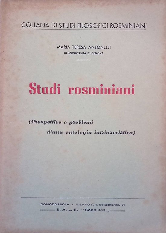 Studi rosminiani. Prospettive e problemi d'una ontologia intrinsecistica