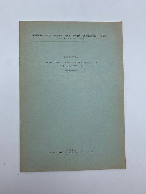 Studi sugli apterogynidi e mutillidi della palestina (Himenoptera) | Libri antichi e moderni | Fabio Invrea