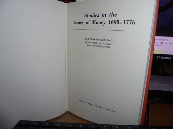 DOUGLAS, VICKERS. London, Peter Owen Limited, 1960. STUDIES in The THEORY OF MONEY 1690 - 1776. In-8° piccolo, tela edit. bleu con titolo in oro al dorso, sovracopertina. viii, 313 pp. Uff. B - II - 4 - 2