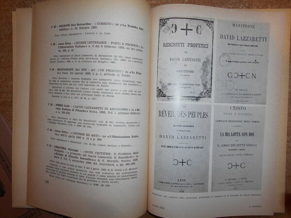 A cura di Leone Graziani. Roma, La Torre Davidica, 1964. Studio Bibliografico su DAVID LAZZARETTI Profeta dell' Amiata. In-8°, cart. edit. ix, 269 pp. con 16 tavole f.t. Saggi critici di Francesco Sapori e Piero Misciattelli. Carta con naturale ingiallimento ai bordi ma in ottimo stato di conservazione. Uff. A - II - 3 - 2