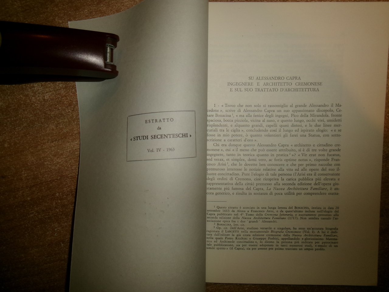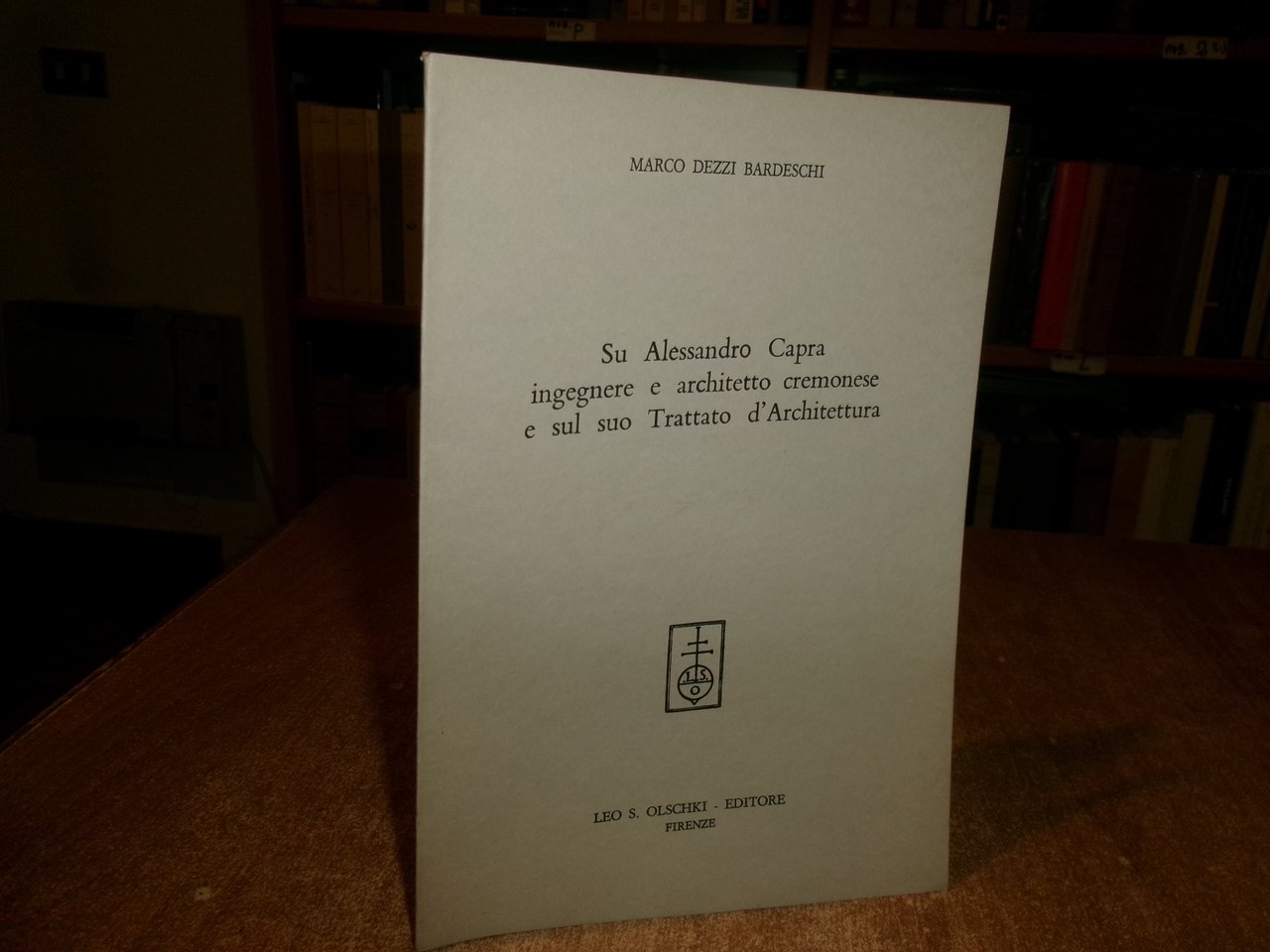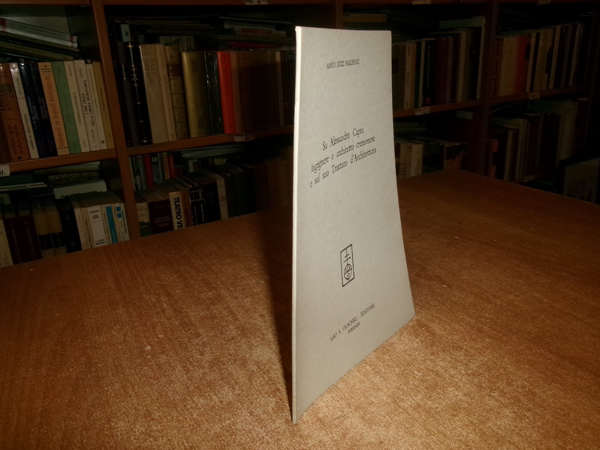 Marco Dezzi Bardeschi. Firenze, Leo S. Olschki, 1963. Su Alessandro Capra Ingegnere e Architetto Cremonese e sul suo Trattato d' Architettura. In-8°, br. da pag. 45 a pag. 79, (1) pp. Opuscolo (estratto) come nuovo. Neg. mob. nero P - P entro busta trasp.