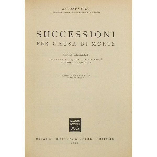 Successioni per causa di morte. Parte generale: Delazione e acquisto dell'eredità. Divisione ereditaria