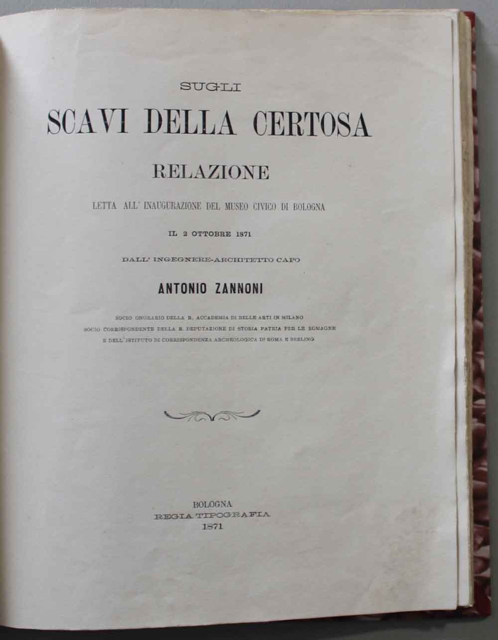 Sugli scavi della Certosa. Relazione letta all'inaugurazione del Museo Civico di Bologna