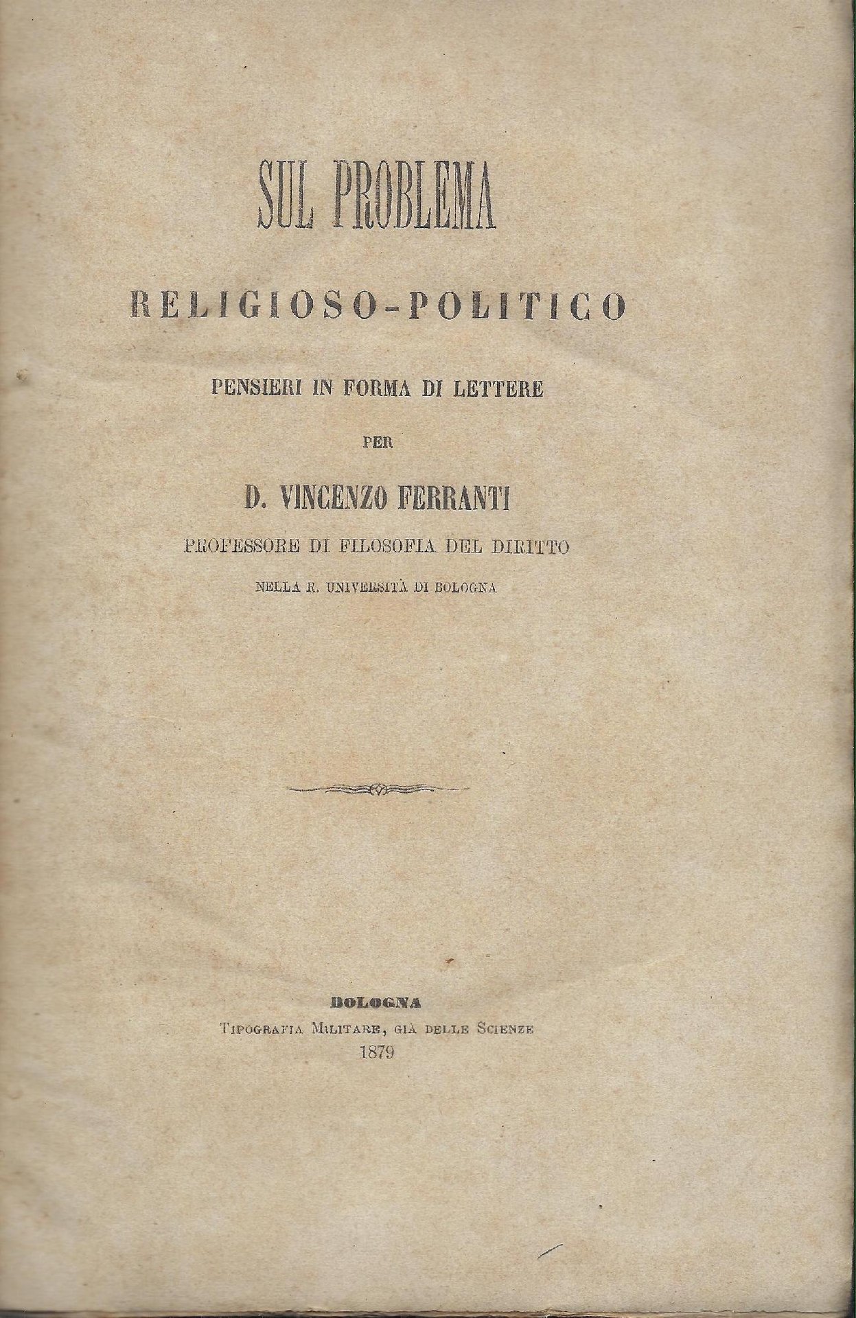 Sul problema religioso-politico : pensieri in forma di lettere | Libri antichi e moderni | Ferranti, Vincenzo, ,Ferranti, Vincenzo
