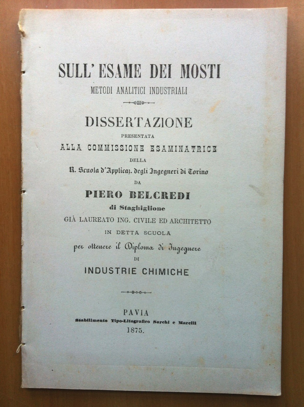 Sull'esame dei mosti dissertazione Piero Belcredi Pavia 1875 - E14089