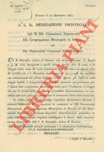 Brescia, 26 settembre 1837, cm. 26 x 18, 4 pp. I.R. Delegazione Provinciale, Circolare, a firma Bellati (fori di tarlo marginali)